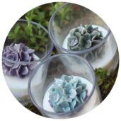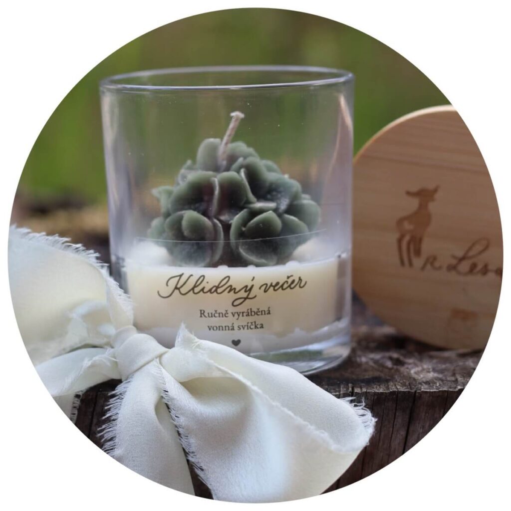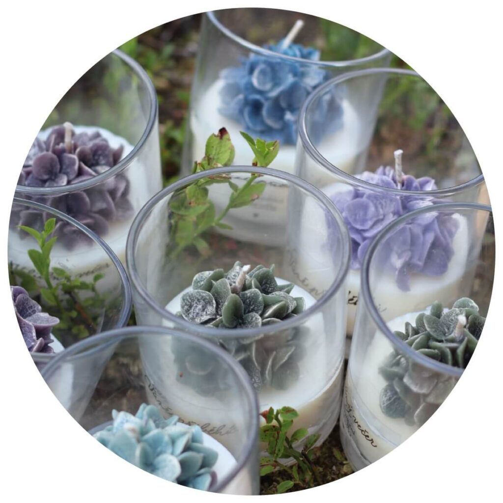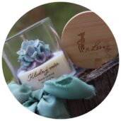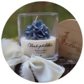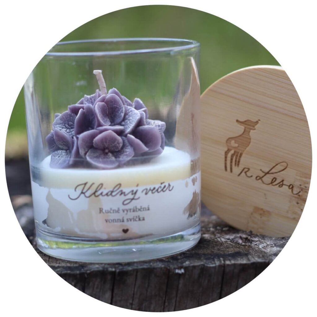 ručně vyráběná svíčka s květem Hortenzie sójový a včelí vosk, víčko s gravírovaným logem 300 ml